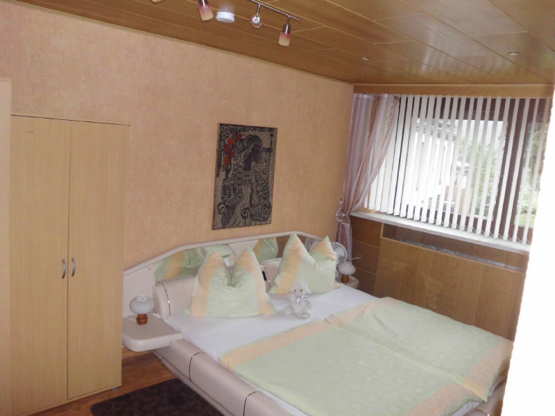 - Schlafzimmer großes Doppelbett mit Radio.